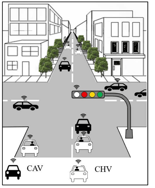 Когато достатъчно автономни превозни средства се приближат до кръстовище, те комуникират помежду си безжично. Те договарят правото на преминаване и образуват колони. След като се достигне тази критична маса, светофарът преминава в бяло.