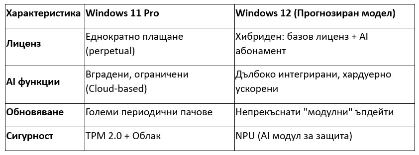 Традиционният лиценз за Windows 11 Pro например работи на принципа: „Купуваш веднъж, ползваш до края на поддръжката“. Новият модел вероятно ще предложи „Windows като услуга“, където базовите функции са безплатни (или включени в ядрото), но премиум AI възможностите (Advanced Copilot) ще изискват месечен абонамент, подобно на Microsoft 365.