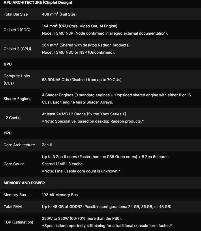 За разлика от случая с PlayStation 6 Orion APU, Moore's Law is Dead не знае крайните целеви честоти за CPU и GPU на системата Xbox от следващо поколение, така че е невъзможно да се направи добро сравнение на производителността между двете системи.