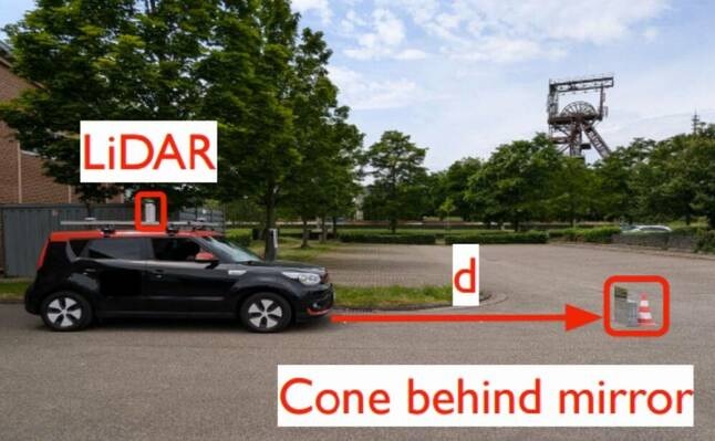 Огледалата могат да заблудят сензорите за откриване и измерване на разстояния (LIDAR), използвани за управление на автономни превозни средства, като ги карат да откриват обекти, които не съществуват, или да не откриват реални препятствия.