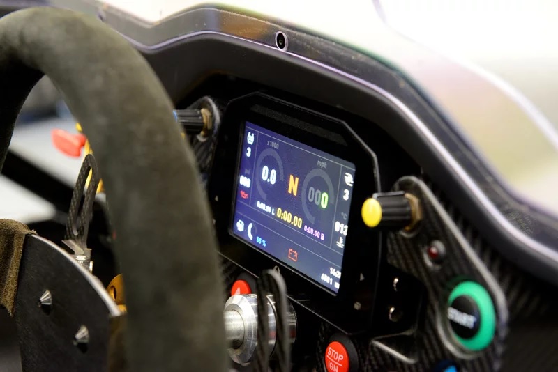 След като преминете през откритата защитна клетка и се настаните в кокпита, ще ви посрещнат волан, облечен във велур, цветен TFT дисплей, който показва основна информация за автомобила и показатели за състезателните постижения, както и лостове за превключване на шестстепенната последователна скоростна кутия Quaife, без да се налага да задействате съединителя при всяко превключване. Отделните седалки се регулират в пет посоки, а автомобилът се предлага в конфигурации с ляво или дясно кормилно управление.