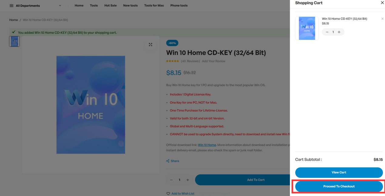 Добавете продукта в кошницата и след потвърждение кликнете върху „Продължете към касата“