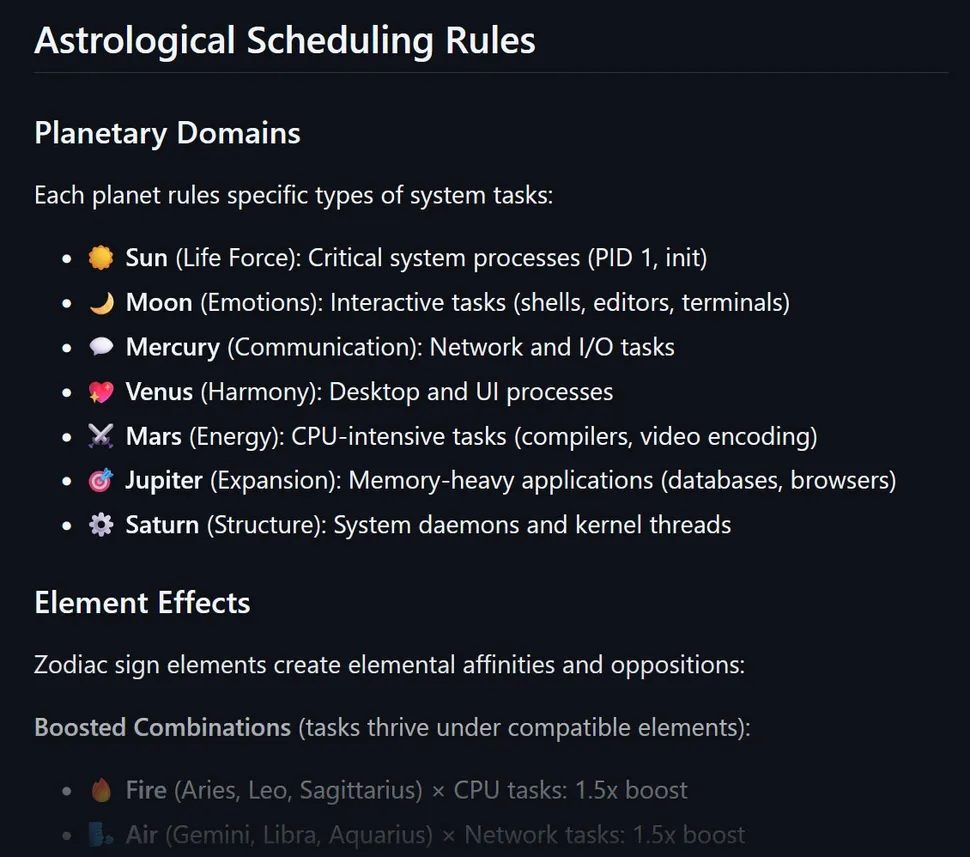 Това може да звучи като безсмислено упражнение, освен ако не сте лесно впечатлителни и със слабост към астрологията, но този GitHub проект отлично демонстрира мощността и гъвкавостта на sched_ext. Накратко, sched_ext е сравнително нова платформа, която позволява имплементирането на персонализирани Linux планиращи програми без промяна на ядрото. Сигурни сме, че функцията не е била проектирана да разпределя CPU време и други системни ресурси въз основа на движенията на небесните тела – но може да го прави.
