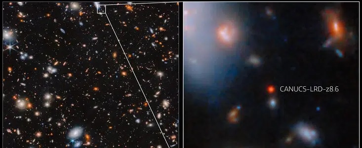 Галактиката, наречена CANUCS-LRD-z8.6, е част от клас далечни, малки галактики, които от години интригуват астрономите. Тези „малки червени точки“, както са известни, са слабо видими и трудни за изучаване, но усъвършенстваните възможности на телескопа „Джеймс Уеб“ позволиха на астрономите да открият ключови спектрални характеристики. Тези характеристики показаха наличието на растяща черна дупка в центъра, която опровергава настоящите очаквания както по размер, така и по поведение. Бързият растеж на тази черна дупка предизвика въпроси относно естеството на образуването на черни дупки в ранната Вселена.