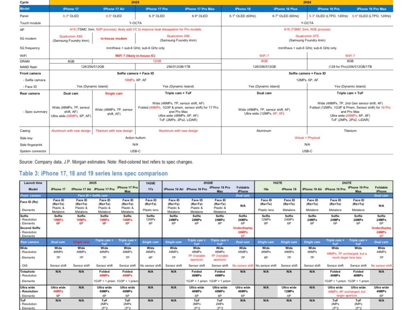 Анализаторът Макс Вайнбах публикува сравнение на спецификациите на JP Morgan за предстоящите модели iPhone, в което са включени iPhone Air 2 и iPhone Air 3. Вайнбах посочва, че JP Morgan и други подобни банки са „много добри“ в получаването на този вид информация от веригата за доставки. Това предполага, че веригата за доставки на Apple се подготвя за iPhone Air 2 и Air 3 или каквито и да са имената им, въпреки слабите продажби на iPhone Air.