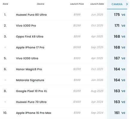 С доста приличен резултат от 164 точки Motorola Signature заема шесто място в общата класация на DxOMark – едно място пред Google Pixel 10 Pro XL и точно под Apple iPhone 17 Pro. Устройството показа само незначителни слабости по време на анализа на DxOMark, като неравномерна експозиция при заснемане на видео, шум в изображението при сцени със силно осветление на фона и известна загуба на детайли при 2x зум поради използването на цифрово увеличение.