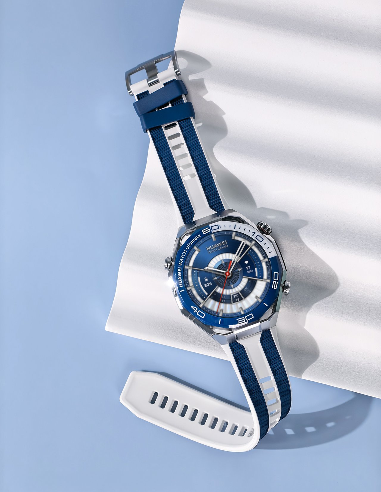 HUAWEI WATCH Ultimate 2 се предлага в цветове Blue и Black, с корпус от аморфен метал на циркониева основа, двуцветен нанокристален керамичен безел и сапфирен кристал за отлична издръжливост. И двете версии идват с второ, удължено рама за каишката от флуороеластомер, съответно в синьо-бяло и в черно, а синята версия идва и с втора титаниева верижка в комплекта, която го превръща в премиум бизнес модел от най-висок клас. Различните лица на Huawei Watch Ultimate 2 са уловени във фотосесията на Лора Динева, заснета с новата Huawei Pura 80 Ultra.