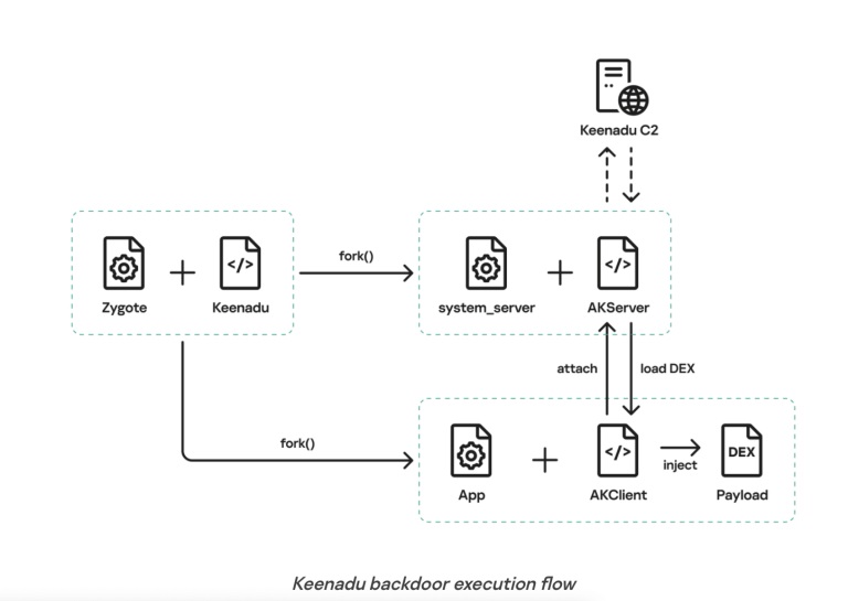 В някои случаи зловредният софтуер е бил открит във фърмуера на таблетите, което показва, че някой от веригата на доставки тайно е заредил зловредния код. „В този вариант Keenadu е напълно функционална софтуерна задна вратичка, която предоставя на атакуващите неограничен контрол над устройството на жертвата“, предупреждава Kaspersky.