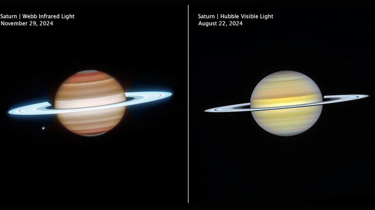 Снимките на „Хъбъл“ са заснети като част от програмата „Outer Planet Atmosphere Legacy“ през август 2024 г., докато снимките на „Уеб“ са направени няколко месеца по-късно. „И двете улавят слънчевата светлина, отразена от ивичестите облаци и мъгли на Сатурн“, казва НАСА, „но докато „Хъбъл“ разкрива фини цветови вариации по цялата планета, инфрачервеният образ на „Уеб“ улавя облаци и химикали на много различни дълбочини в атмосферата, от дълбоките облаци до разредената горна атмосфера.“
