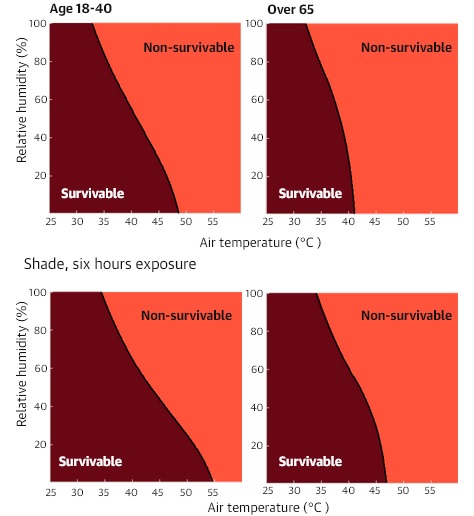 Смяташе се, че абсолютната граница за оцеляване на човека е шестчасова експозиция на температура на мокрия термометър от 35 °C – показател, който отчита както температурата, така и влажността, но който рядко е наблюдаван на планетата на такова ниво.
