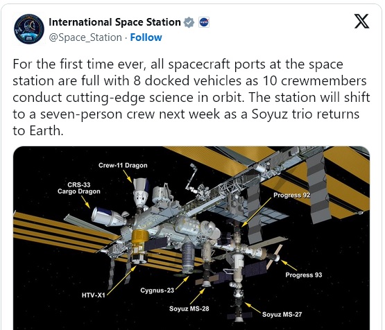 Пълното заемане на всички докинг портове на борда на МКС означава нещо повече от просто логистично постижение. То отваря нови възможности за международно сътрудничество и разширява изследователските възможности на МКС. Осемте космически кораба, които в момента са прикачени към станцията, включват комбинация от пилотирани и безпилотни превозни средства: две капсули SpaceX Dragon, Cygnus XL, японската HTV-X1, два пилотирани космически кораба "Союз" от Русия и два товарни кораба "Прогрес". Тази разнообразна група космически кораби демонстрира как МКС се превръща в оживен център на дейност, където различни космически агенции работят заедно, за да разширят нашето разбиране за Космоса и човешкия живот извън Земята.