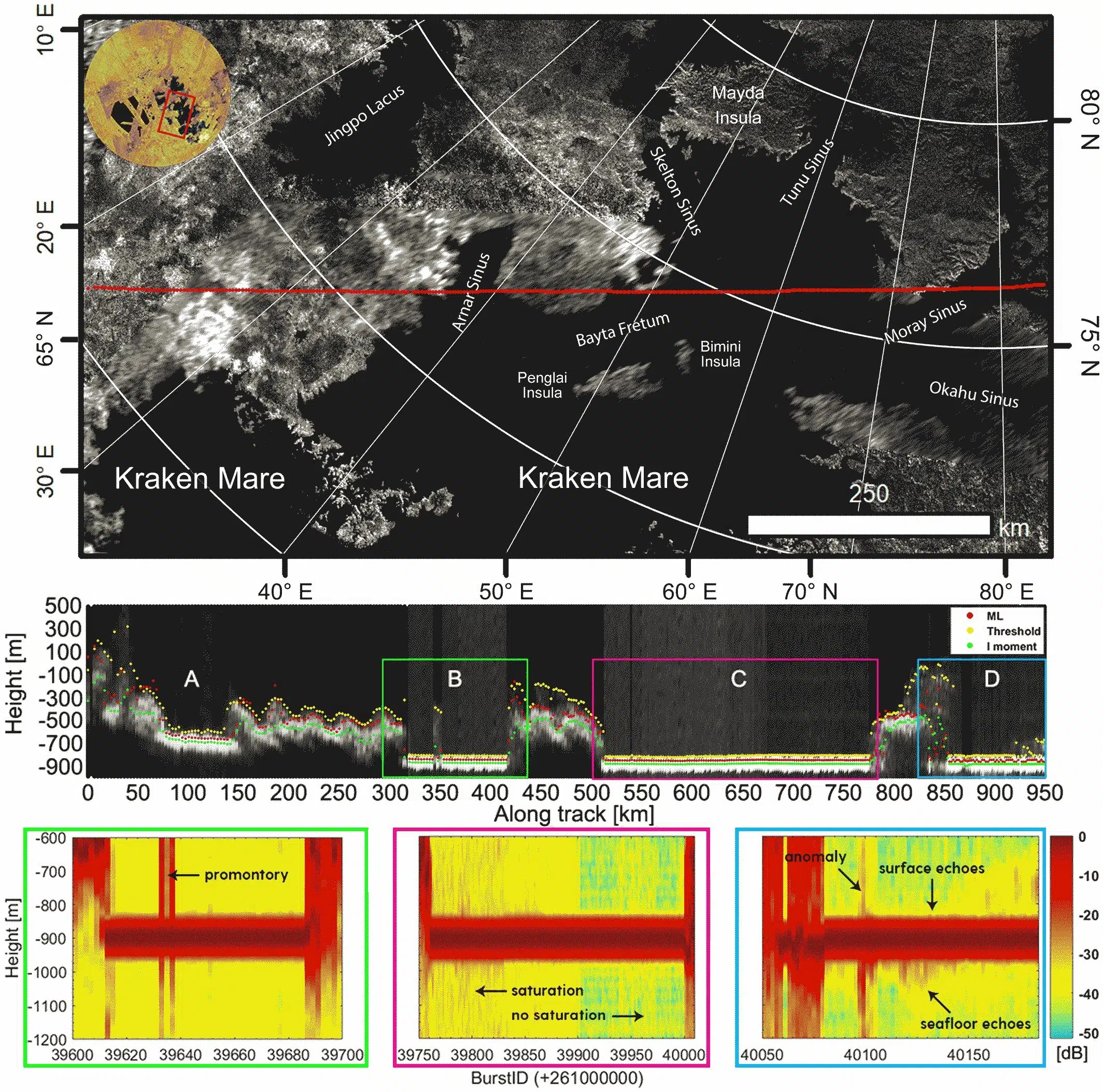 Актуализираните резултати се базират на данни, събрани по време на 104-тото прелитане на „Касини“ над Титан на 21 август 2014 г. По време на това прелитане радарният инструмент на космическия апарат сканира 200-километрова траектория по източния край на Кракен. В участък от 40 километра радарът произведе ясно двойно ехо – едно от повърхността на морето и едно от дъното му.