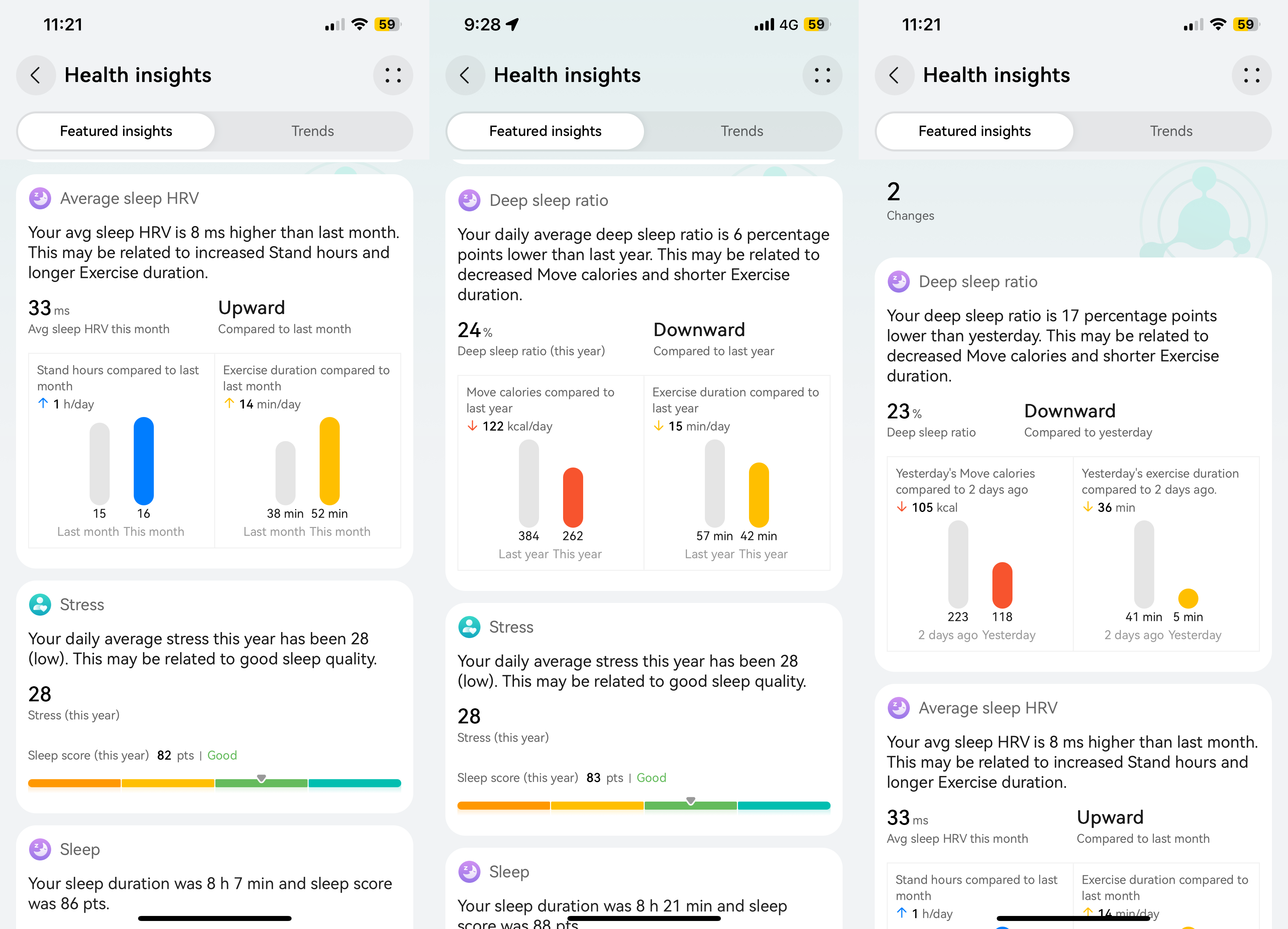 Полезни и интересни са тенденциите, които с помощта на събраните данни от емоции, тренировки, сърдечно здраве, качество на съня се анализират и предоставят. Получената информация ни помага да осъзнаем и видим промените във физическата ни кондиция, здравето и конкретни поведенчески модели. Ценни са и препоръките, които ни помагат да изградим по-здравословни и устойчиви навици.