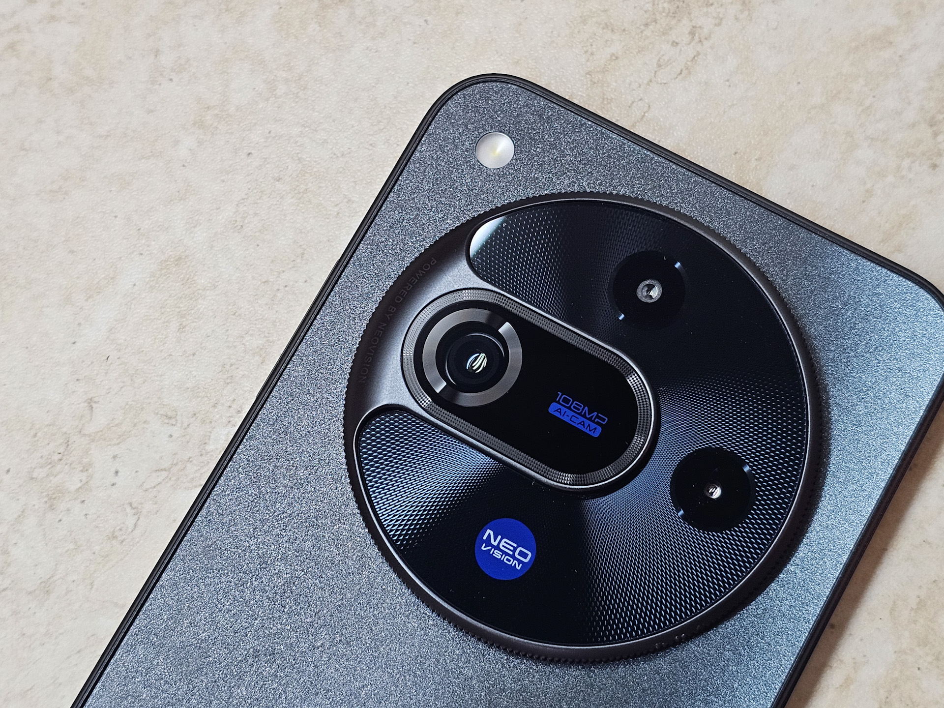 Решението да се заложи на по-голяма конфигурация за камерите, изглежда изцяло дизайнерско, защото те са само две и биха се побрали и в значително по-малко пространство, но когато е центрирана по този начин, има много повече баланс, когато апарата се използва легнал на гладка повърхност. Въпреки това, светкавицата е извън нея, което също е интересен елемент и придава доза идентичност.