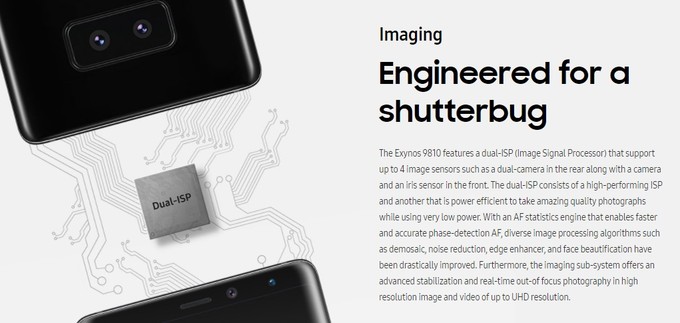 Южнокорейската компания е регистрирала фразата Тhe Camera.Reimagined, която загатва за сигурни нови функции във фотосензора на Galaxy S9 и може би дори и Note 9. Без съмнение подобрената камера ще бъде свързана с новите възможности, които чипсетът дава. Сред тях са по-прецизна обработка на изображенията, 4К видеозаписи плейбек със 120 кадъра в секунда, красив bokeh ефект при високи резолюции и др.