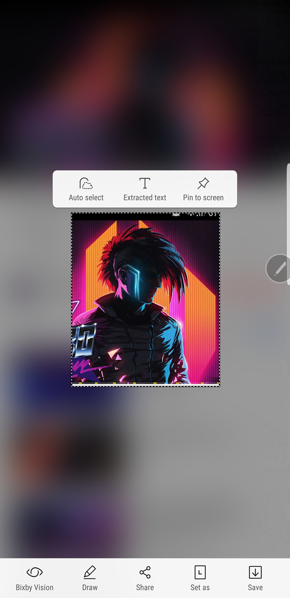 Част от менюто на Bixby и функцията за разпознаване на обекти