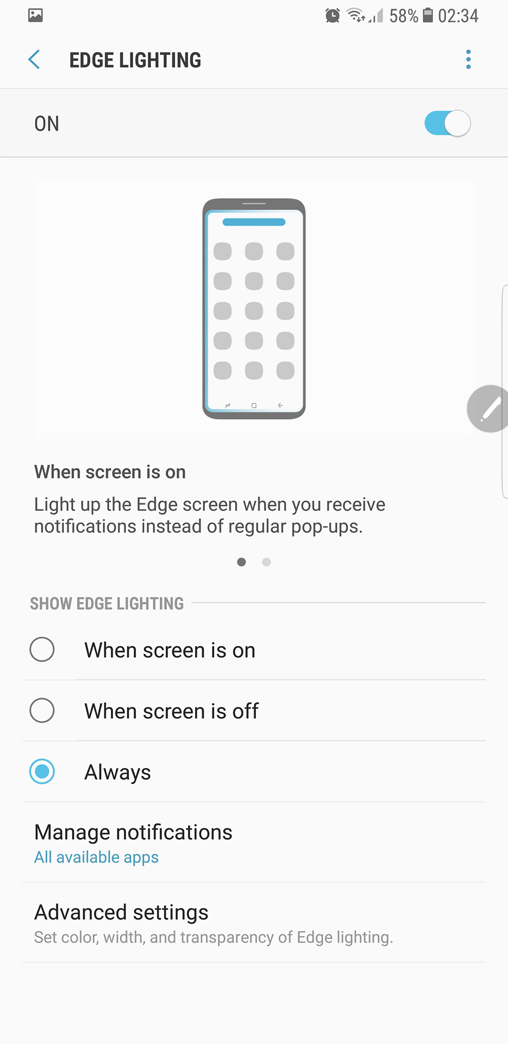 Активиране на Edge Screen и настройките на Edge Lightning - изглежда наистина приятно.