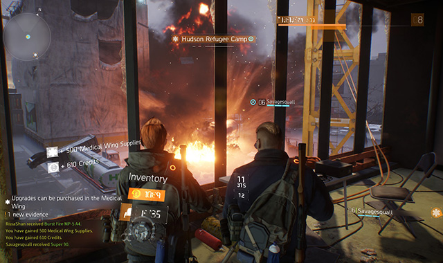 Веднага открих трима други агенти на Дивизията, с които обединих сили. Двама бяха изключително мълчаливи, с третия си бъбрехме весело, докато чистехме улиците на Централен Манхатън от врагове. Бързо напълнихме яркожълтите раници с полезна екипировка и извикахме хеликоптера да ги прибере. Веднага към мястото на срещата се втурнаха и други неутрални агенти. Започнаха най-дългите 90 секунди от живота ни. Първи пристигнаха нормални агенти, които видяха, че сме четирима и капацитетът на хеликоптера няма да бъде достатъчен, за да приберем и тяхната плячка. После обаче четири точки на картата ми, отбелязващи агенти ренегати, започнаха да се приближават. Това беше първата ми битка на агенти срещу агенти. Дори не знам как оцеляхме. Хеликоптерът отлетя и продължихме напред.